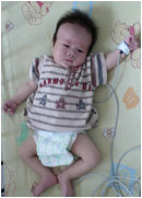 Liam was born on April 12, 2008 and abandoned on a busy sidewalk a month later. He has a complex and very serious heart disease (TGA, VSD, PDA, and a narrow pulmonary artery and valve). The local hospital was unable to do his surgery, so his orphanage asked us to help him. The surgeries he needs are complex and dangerous, but without treatment, he would not survive. He came to New Day Foster Home on July 18, 2008. On September 2, 2008, Liam had his first heart surgery, placing a shunt to help his heart grow stronger in preparation for the more complicated surgeries he needs. We hope that his treatment goes smoothly and his recovery is quick, for we can't wait to see what his life holds!