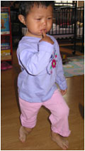 Sophie was born on August 24, 2005 and abandoned on September 15, 2005. Sophie was born without the fibula in her right leg, an abnormal curvature of the right shinbone, and strephenopodia of the right foot. She came to the foster home on September 29, 2007, and we were able to provide Sophie with a brace to help her walk. When Sophie first arrived, she was a quiet little girl who often looked quite sad. Now she has opened up and is an outgoing child with a fun-loving and creative spirit. Caring for her while she waits for her adoptive family has been such a blessing!