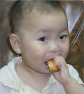 Claire was born February 25, 2004 with a cleft lip and palate. She has since had surgery to correct this defect. Claire is a very outgoing, happy little girl who loves to make friends with others. In June 2005 she went to live with her foster family where she has learned to walk. We are thankful that we have this opportunity to make a difference in this precious little girlĄ¯s life.