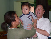 Erwan was born on July 28, 2007. Born with heart disease (VSD), he was abandoned on November 28, 2007. His orphanage arranged for him to have heart surgery in Tianjin, and asked us to care for him after the surgery was complete, as his orphanage is too far away to do regular check-ups after the surgery. He had his heart surgery in July 2008, and it was successful. He loves to smile and enjoys watching everything that goes on around him. He is a smart little boy who is very engaged with his environment. When it is time for his medical checkups, he tries to squirm away. We can't wait to see Erwan's personality unfold in the coming months.