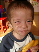 Evan was found abandoned at the local bus station and taken to the orphanage. When Evan first arrived he was a very unhappy little boy. He cried often and if he wasn't crying he would sit in his chair expressionless. He also had difficulty eating which had caused malnourishment. After being placed in a foster family with love and care he began to improve. His appetite improved and he even begun to smile.