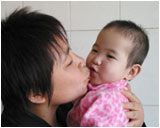 Lydia receiving a kiss from one of the foster care coordinators. |