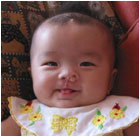 ¡¡Abby is a good baby. She came to us from a local orphanage on February 24, 2003. Abby was born with a cleft lip that has been repaired. She also has tumors in her left nostril and on her head, which were removed July 2, 2003. Abby loves to entertain those around her with the many faces that she uses to show her emotions. She is a very cheerful, alert child.