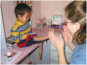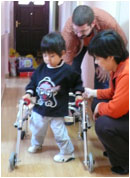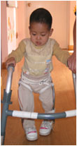 Daniel is from a small town in northwest China. He was found abandoned when he was twelve days old at 5:00 PM on August 22, 2003 by a pediatrician who diagnosed him with Spina bifida. He was found with a blanket, a sheet, a bottle of milk and a bracelet on his right wrist. Soon after he has legally declared an orphan he went to live with a foster family who cared for him till he went to Shanghai for surgery. On March 24, 2004 a very successful seven hour surgery for spina bifida and hydrocephalus was performed. This sweet little boy, who is now living with us at NDFH will need special attention as he strives to overcome his medical problem.
