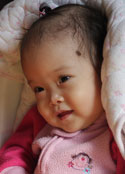 Nicole was born on October, 2010. Born with severe spina bifida, she was abandoned at the gate of the local orphanage on October 13, 2010. Unable to locate her parents, the orphanage took her to the hospital right away when they noticed that the spina bifida was broken and open, leaking spinal fluid. After doing a check-up, local doctors said they did not have the experience or skill necessary to operate on her due to the severity of her condition. They were able to test her lower-limb functionality, and unfortunately found that due to the fact that the spina bifida ruptured, she had lost all responsiveness and reflexes in her legs. The orphanage called New Day Foster Home for help, and on October 16, 2010, Nicole arrived at Beijing where she was immediately checked into a hospital for treatment. She is a beautiful, peaceful, and sweet baby girl, and we believe that she can overcome these challenges!