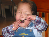 Samuel was born on October 16, 2004 and was diagnosed with a very serious heart disease, Pulmonary Atresia. After he was found abandoned, he was taken to the local orphanage in the city where he was born. Looking to save this little boy the orphanage contacted us to see if we could help. On August 22, 2005 Samuel came to join the New Day family. Samuel was very weak, cyanotic and malnourished when he arrived. This happy little boy who is fighting to survive will soon have is heart surgery scheduled.
