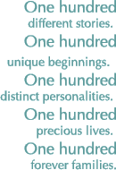 We are proud to announce that we have just celebrated our 100th adoption. Each of the 100 children played an important role in making New Day Foster Home what it is today. Their unique personalities and stories transformed us and shaped NDFH in ways too numerous to count. We've seen children survive heart surgeries they should never have survived. We've seen children walk who should never have taken steps. We've seen children bloom and blossom who we were told would never open themselves to affection. In short, for each of the 100 children we've had adopted, we've seen many miraculous transformations. And for us, the simple fact that 100 children who were discarded, unwanted, and deemed hopeless are now living with their forever families is the biggest miracle of all.