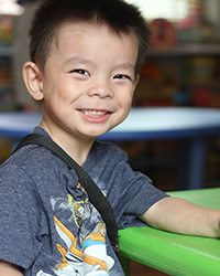 Asher nació el 27 de julio de 2010 y fue abandonado dos días más tarde. La policía trató de localizar a sus padres pero, al no lograrlo, acabaron trasladando a Asher al orfanato local. Asher nació con un defecto gastrointestinal y diversos problemas urológicos y ortopédicos. Ya se ha sometido a dos cirugías por ello. Asher llegó a New Day el 11 de septiembre de 2012, con dos años de edad. Es capaz de comunicarse con los adultos y elabora frases de dos o tres palabras. Cuando Asher conoció a nuestro perro Tom, inmediatamente se interesó por él, y trató de subir sobre él para darse un paseo. Asher es un pequeño muy guapo, con unos ojos grandes y expresivos. Estuvo en una familia de acogida antes de llegar a New Day para recibir los cuidados médicos y quirúrgicos que necesita. Esperamos que se adapte rápidamente a nuestro hogar, y que aquí se sienta especial y muy querido.