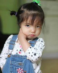 Esther nació el 11 de Mayo del 2011 y fue abandonada dos días después en el parque local. Tras no localizar a sus padres, un policía la trasladó al orfanato local. Esther no tiene orejas. Es una niña muy inteligente. Reconoce a su cuidadora y responde cuando la ve. Le encanta interactuar con las personas y jugar con los juguetes. Vino a New Day el 27 de Octubre de 2011 y estamos deseando verla florecer.