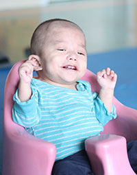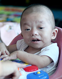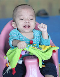 Samuel nació el 6 de Diciembre del 2014 y abandonado seis semanas después el 23 de Enero del 2015 en la puerta principal del orfanato local en un lugar seguro para bebés. Samuel tiene dificultades con varias necesidades especiales, como defectos congénitos de corazón, ORL(otorrinolaringologia) y problemas neurológicos. Él es un pequeño niño que se enferma a menudo. Él tuvo una cirugía en Julio que le ayudó a ganar peso y esperamos le ayude a mejorar su salud. Samuel es parte de nuestro proyecto de cuidado médico temporal a partir del 27 de Julio del 2015, para poco después regresar a Mongolia interior ya recibido tratamiento médico en Beijing. El 20 de Octubre del 2015 él se unió permanentemente a nuestro programa y nuestras niñas estaban más que dispuestas a cuidarlo por su linda sonrisa y personalidad.