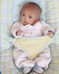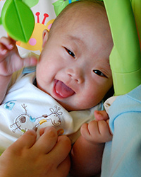 Timothy nació el 15 de Septiembre del 2013 y abandonado muy pronto después. Él nació con Síndrome de Down y un problema de corazón ( Del cual ha sanado!) y un problema ortopédico.Timothy es un pequeño con ojos grandes. A él le gusta saber qué está pasando a su alrededor y siempre sonriente cuando se le abraza y se le habla. Cuando Timothy llegó a nuestro cuidado tenía problemas para subir de peso y a menudo se enfermaba de neumonía . Con algunos meses bajo nuestro cuidado él fue ganando peso y rara vez se enferma.El problema de corazón de Timothy se arregló sin cirugía . Él es un niño hermosos con un gran potencial y divertidisima personalidad.Timothy hace caras chistosas que mantienen a cus nanas sonriendo y sus favoritas diversiones son: pelotas,burbujas y munecas en forma de bebés. Nosotros ya hemos visto mucho progreso en él y estamos ansiosos de su continuo crecimiento