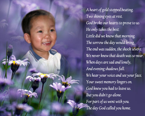 Xin Tian Le El día 2 de marzo, el pequeño TianLe falleció tras más de 12 horas en el quirófano. Formó parte de nuestras vidas poco tiempo, pero su muerte ha dejado un halo de eternidad en nuestros corazones. Tian vivía en XinJiang y deja una madre de acogida amorosa y sus recientes amigos de la Casa de Acogida de New Day.