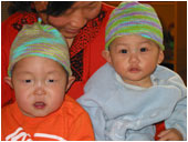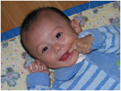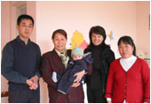 Little Wendel was born on February 8, 2006 with a congenital heart disease (VSD) and was abandoned six months later. In September he was taken by his orphanage to Tianjin for heart surgery. Following the surgery, his orphanage asked if we could care for him until he was adopted. On October 10, 2006, this bright-eyed, enthusiastic little boy joined the New Day Family. Wendel was 8 months old when he arrived, and at the time he was weak, thin, and could not even roll over. Now he is an unstoppable ball of energy, and developmentally on-track. We are thankful that we've had the opportunity to get to know Wendel and invest in his future.