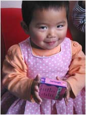 Jewel is a shy, pretty girl from an orphanage in Tibet. She developed severe bronchitis and was sent to the hospital for treatment. Diagnosed with high altitude sickness, she slept mostly during the day and cried at night. She was sent to mainland China where she was brought to the New Day Foster Home. Today she is a quiet little girl who is learning to smile again.