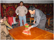 Welcoming dinner where the "guests of honor" must eat a sheep head |