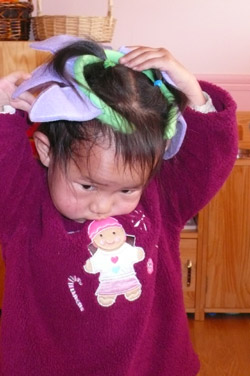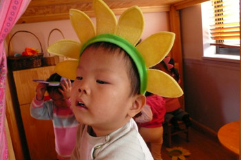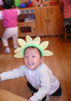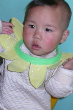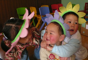 Spring is definitely in the air! All over Beijing, the cherry trees are starting to bloom. And in our own backyard, we're seeing lots of new growth and bright colors. In a recent care package from his family, Brett's cousin sent these fun flower headbands for the children to enjoy.