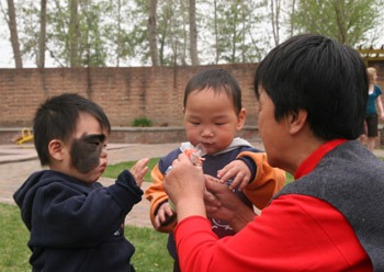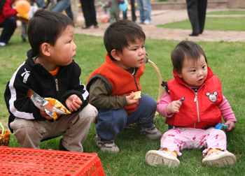 Armed with baskets and an announcement that candy was hidden all over the backyard, our kids were off at the speed of light! They found each and every piece of candy hidden in each and every nook and cranny. And then we sat on blankets in the backyard to cap off the party with a proper sugar rush! Thanks to all of our sponsors who sent Easter goodies! Your contributions meant all the kids had full baskets!
