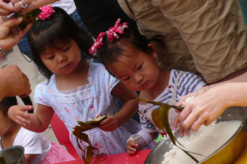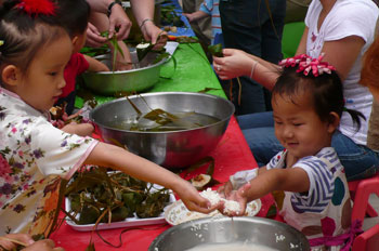 Dragon Boat Festival is a traditional Chinese holiday when families come together to make and eat zongzi, a date- or meat-filled sticky rice dumpling wrapped and steamed in a bamboo leaf. Our NDFH family celebrated the holiday by doing just that!