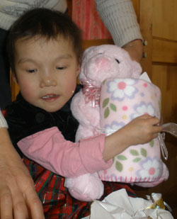 Thanks to all of our friends who partnered with Operation Giggle, we had a wonderful Foster Home Christmas party on Christmas Eve. We have such a large family that we met in 3 separate places. No place at the foster home is big enough for all of us together! So, we divided into smaller groups, and Santa came to visit each of the children, bringing them gifts and lots and lots of giggles.