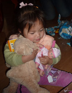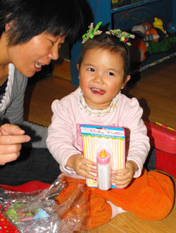 Thanks to all of our friends who partnered with Operation Giggle, we had a wonderful Foster Home Christmas party on Christmas Eve. We have such a large family that we met in 3 separate places. No place at the foster home is big enough for all of us together! So, we divided into smaller groups, and Santa came to visit each of the children, bringing them gifts and lots and lots of giggles.