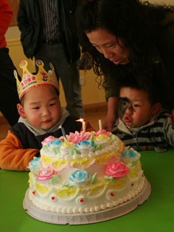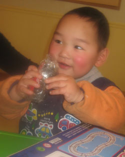 Everyone enjoyed our February birthday party. Evan turned 3 and Khloe and Samuel turned 2 in February. Khloe got to wear a beautiful birthday dress sent by her adoptive momma for her special day, and Evan and Samuel were happy to let her have the "princess spotlight" all by herself!