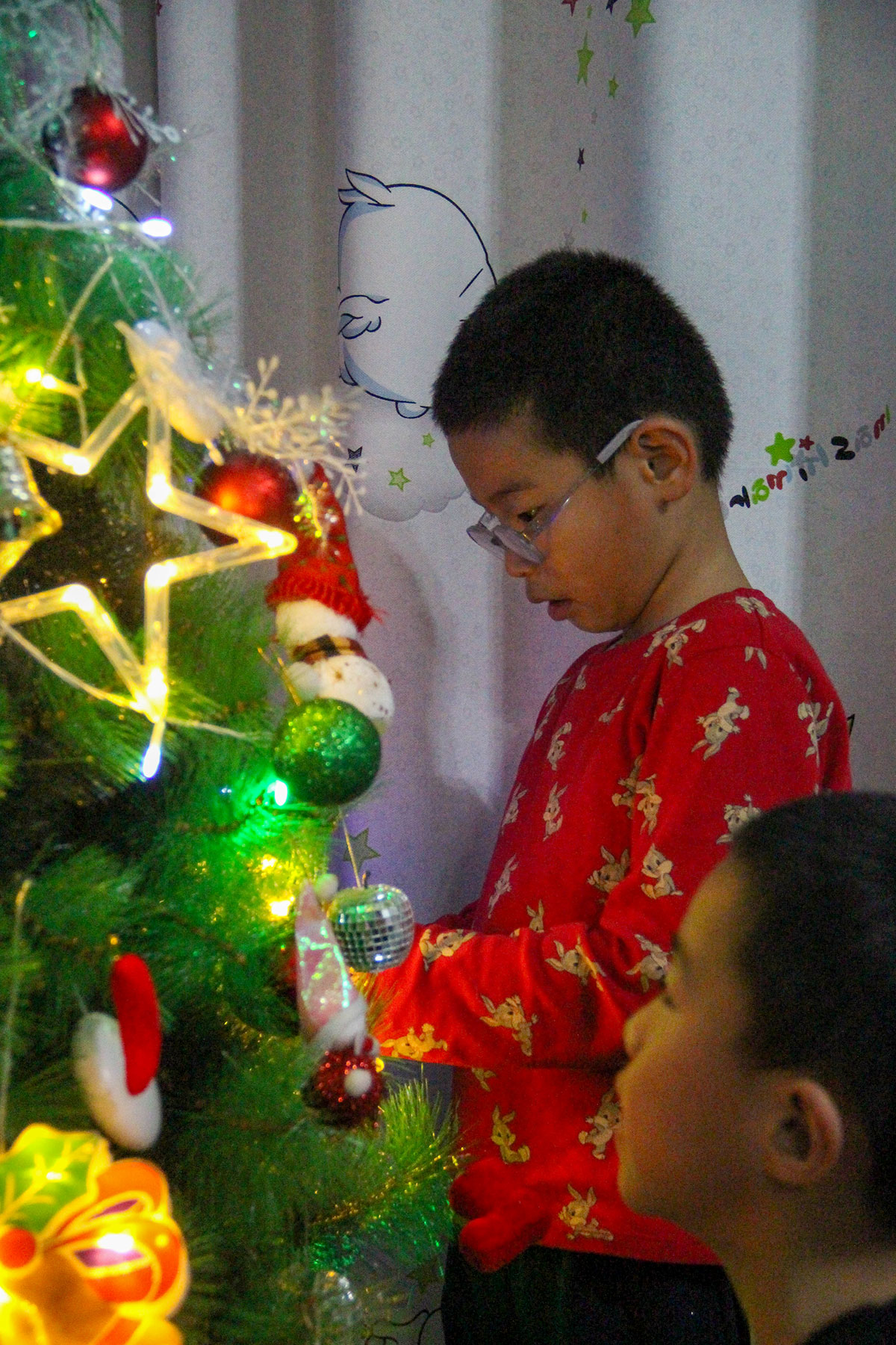 In our Savannah Project, the Christmas tree shone brightly as the children worked hard to hang ornaments and lights, the glow reflecting on their happy faces. Their excitement filled the room, especially when it was time to open their Christmas presents.