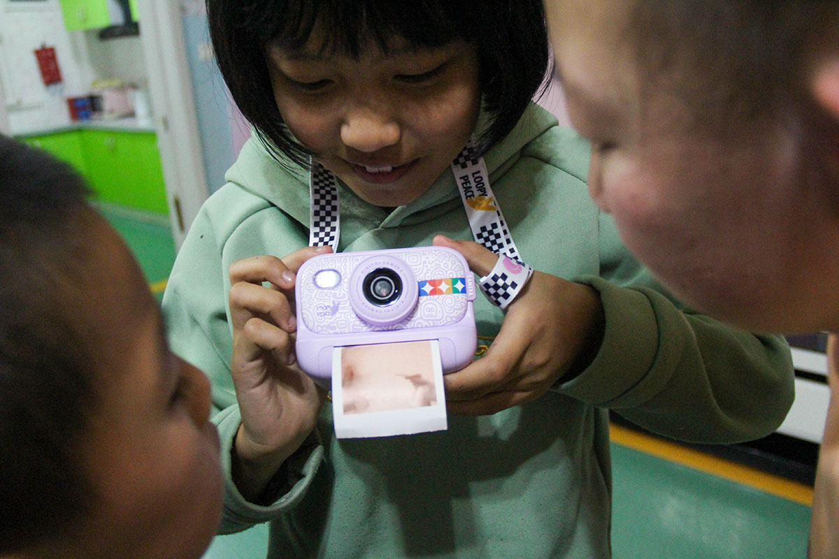 Madeline was delighted that her new doll wore a dress similar to hers. She proudly showed how she could dress up the doll, carefully using the pretty ring and hair tie made just for it. Kai beamed as he lifted his new puzzle high above his head, smiling from ear to ear. Mia was amazed to discover that her new camera could instantly print photos, and she happily went around taking pictures of everyone. Theodore spent a little time figuring out how his new watch worked, and soon used it naturally and confidently. Frank gently tried to talk to the little toy dog, reaching out his hand to pull it back as it walked away from him.