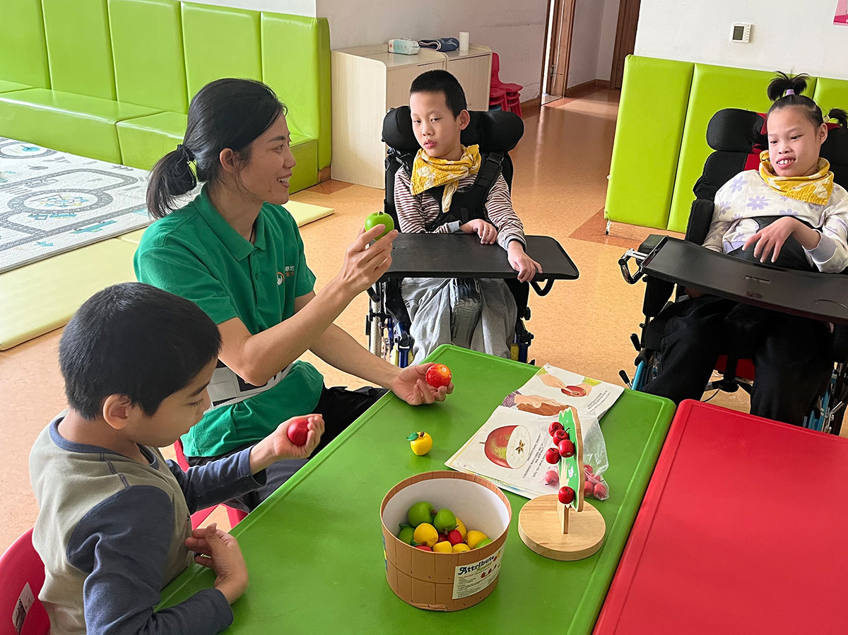 The class about fall is quite interesting. The nannies brought beautiful red leaves, apples, fragrant branches, golden pumpkin, and even books about fall… The kids got to learn about fall, things like the colors, harvesting, flavor… all about fall, it’s such a lovely season and they enjoyed the class so much.